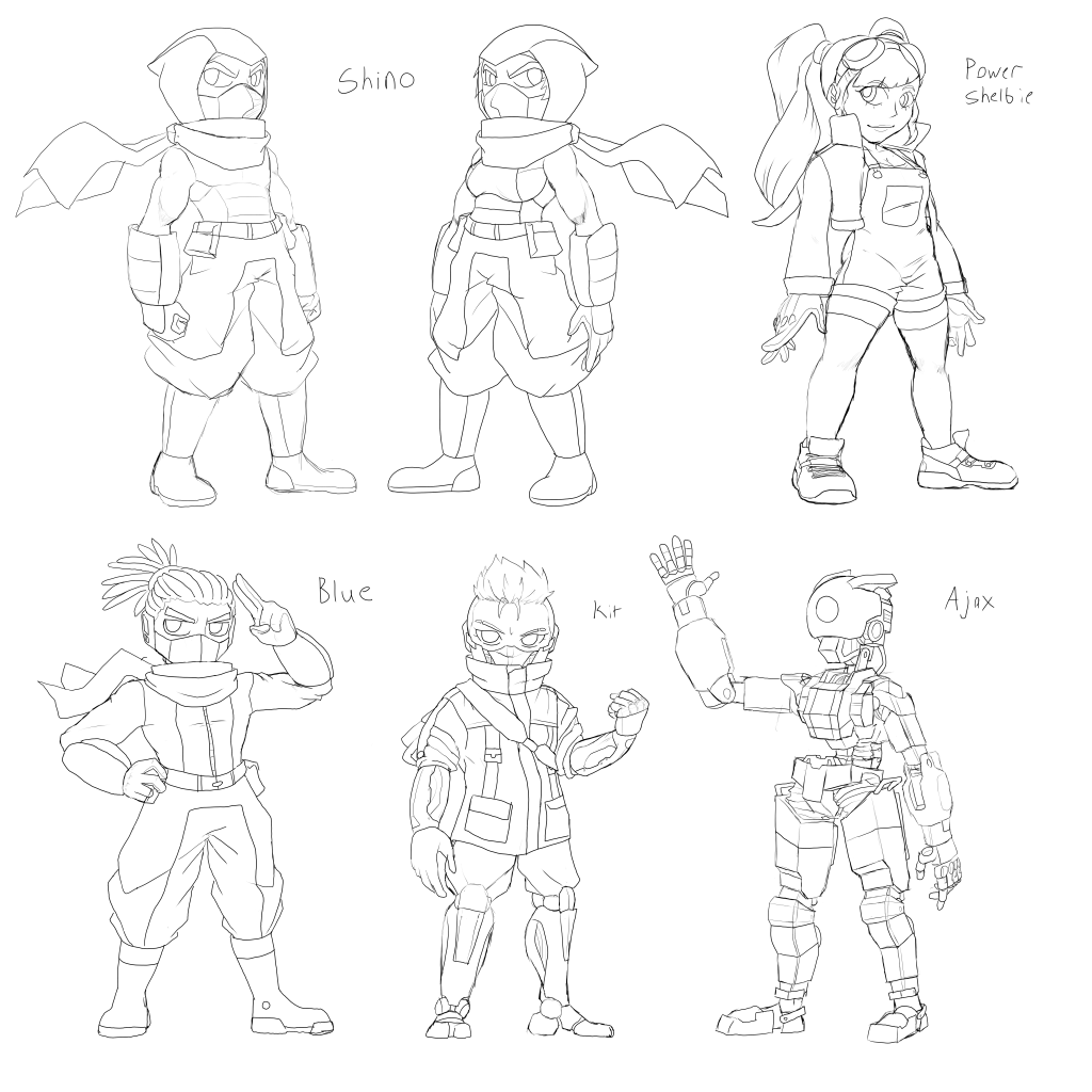 These were the earliest concepts for the main allied cast of the game. they’ve since changed, though Shino, the main character didn’t. The Female version of the Main character has yet to be implemented, but it isn’t scrapped.