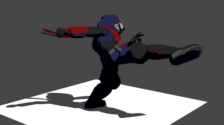 Shino has the ability to run, jump and execute various parkour moves like wall running, wall jumping, Air dashing, Rail grinding, etc. In addition, he has access to a pretty sizable list of combo strings that do varying degrees of damage, stun effects, and knockback. on another note Shino also has the ability to blend into the shadows as evidenced by him becoming a silhouette when walking into the hard cel shaded shadows in the game. doing so makes him invisible to enemies facing him.